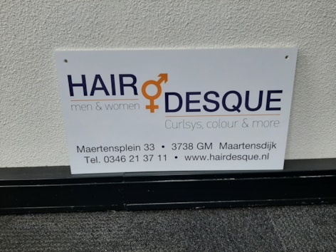 Om zoveel mogelijk klanten na het opheffen van de lockdown te kunnen helpen heeft Hairdesque tijdelijk een tweede vestiging in het dorp. Het aantal klanten dat in de salon aan het Maertensplein geholpen kan worden is in verband met de Coronamaatregelen minder dan normaal. De dependance in het dorp biedt zo uitkomst. 2 jaar geleden verzorgden we de belettering van het pand, voor de tweede vestiging hebben we voor de herkenbaarheid snel een bord gemaakt.